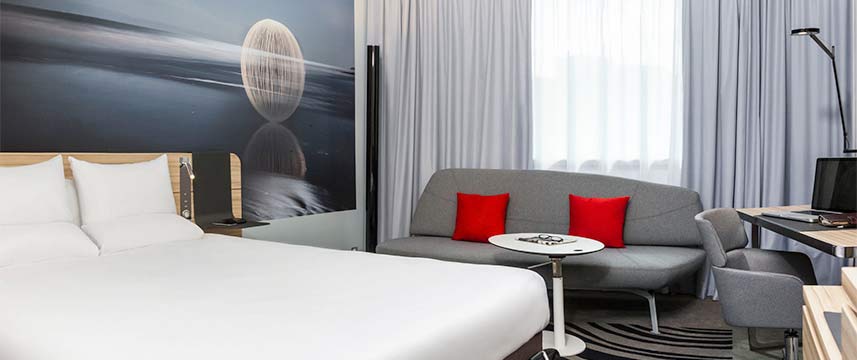 The Novotel Manchester Centre has 164 rooms spacious rooms and suites that all have contemporary decor and ensuite bathrooms with rainfall shower. In-room amenities include free Wi-Fi, 55-inch LCD TV, hairdryer and tea & coffee making facilities. Superior rooms also include Nespresso machines and Executive rooms have the addition of bath robes and slippers. During their stay guests can make use of the Fitness Suite which includes fully equipped gym, as well as sauna and steam room. A generous buffet breakfast is served every morning and the Exchange Food and Drink Lounge offers a range of casual dining dishes throughout the day.