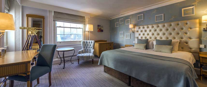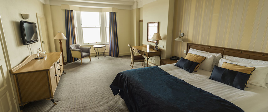 The hotel has 154 rooms, some with sea views, all are decorated in vibrant colours, some rooms still retaining original features. All rooms are equipped with flat-screen TV with Freeview, free Wi-Fi and tea & coffee making facilities. The hotel`s restaurant The Wardroom offers a full evening menu. For more casual dining The Mess Deck Bar and Terrace offers a wide range of lighter dishes and snacks. Afternoon Tea is also served daily.