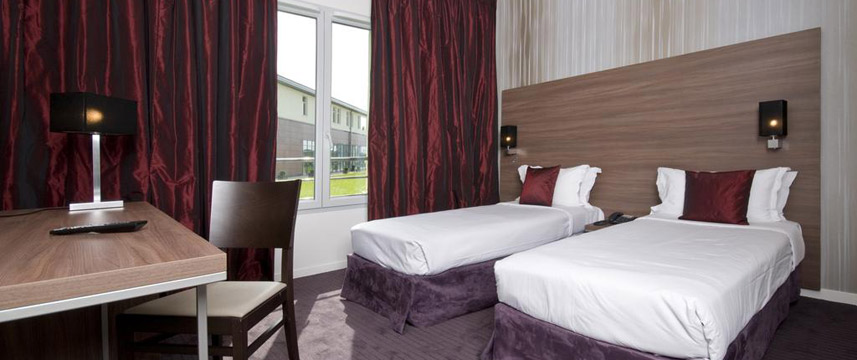 Located in the heart of Marne-la-Vallee, the Paxton Resort and Spa is a 15 minute drive from Disneyland, 30 minutes from Paris and the Bussy Saint Georges RER station is just 2 minutes away. The hotel is also a 5 minute drive from Val d`Europe, the Aquarium Sealife and the outlet shops at Valley Village with its varied selection of 75 shops selling goods from clothing to homeware. The Hotel has a full range of leisure facilities including an indoor pool to which guess have complimentary access from 7am-10pm. (Please note, the pool is not supervised). The hotels entertainment complex offers a 20 bowling alleys, Billiard tables, an Italian restaurant which is open 7 days a week (except on Saturday and Sunday for lunchtime and on bank holidays for lunchtime only)and a lively bar. Please note: This hotel requires an ID / passport for each guest to be presented at check in. More Info