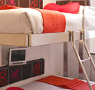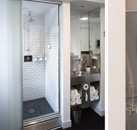 Compact, cleverly designed guestrooms feature custom bedding, iPod docking stations, and small LCD TVs. Built-in furnishings maximize use of space. Rooms have shared or private baths. In-room displays indicate availability of multiple shared bathrooms. The shared bathrooms feature rainfall showerheads, water jets built into the sides, and streaming music. Private bathrooms also have rainfall showerheads (no jets), along with sleek stainless-steel sinks. The Pod also offers suites with standard TVs, private bathrooms, and living areas with sofa beds.