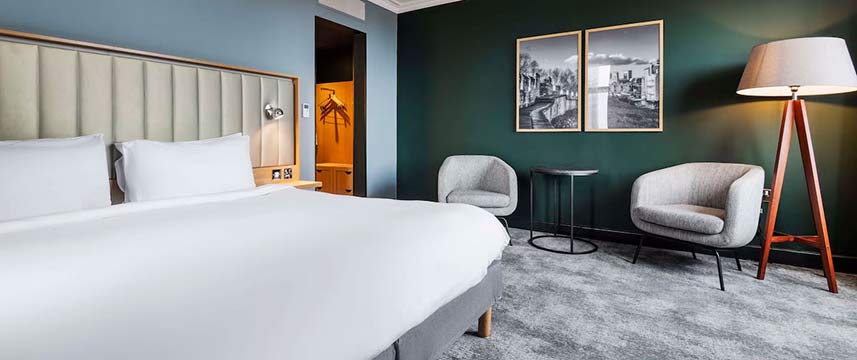 The 3* Radisson Hotel York has 200 rooms with modern decor, many of which overlook the River Ouse or have views of York Minster. All are fully air-conditioned and include free Wi-Fi, tea & coffee making facilities, flat-screen TV and ensuite bathrooms with rain fall shower and complimentary toiletries. Larger Superior rooms with king-size beds and extra amenities including Nespresso machines and bathrobes & slippers are available to book. Guests can also enjoy river views from The Paddle Room which has a fully licensed bar and serves a casual dining menu for lunch and dinner.