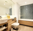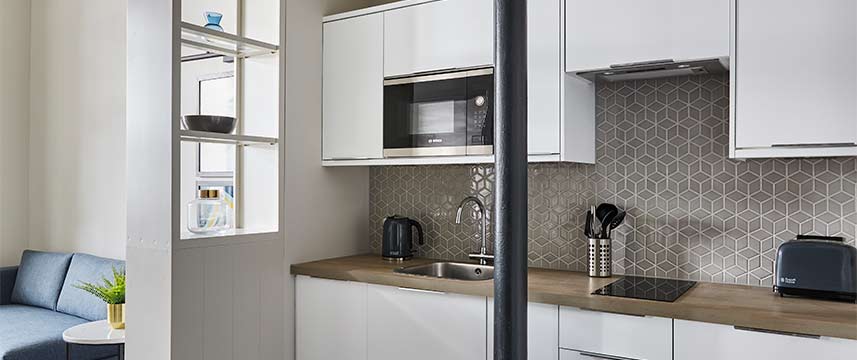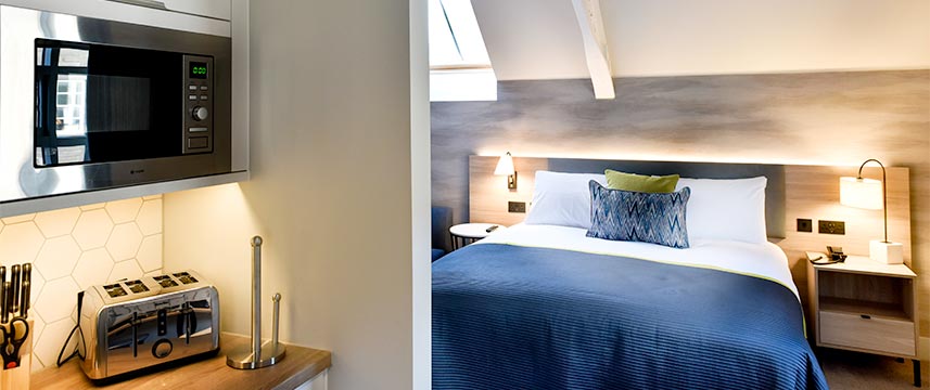 All of the 85 Studio and One Bedroom Suites at the 3* Staybridge Suites Dundee have fully equipped kitchenettes that include microwave, fridge, toasters and coffee makers as well as ensuite bathrooms, air-conditioning, flat screen TV and free Wi-Fi throughout. The larger one bedroom apartments have separate lounge and dining area. All room rates include a Continental buffet breakfast that is served in the sociable lobby space where there is also a Pantry for guests to purchase any grocery items that they might need. There is also a laundry room (payable directly upon use) for longer stays. During their stay guest also have complimentary use of the hotel`s 24 Fitness Suite. This is a pet friendly property, dogs are welcome for £10 per night, which should be arranged directly with the hotel.