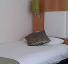 I expect a budget hotel to be basic. It was used as a quick overnight stay. However, it doesn`t cost a lot to clean a place. The corridors were dusty and needed a good vacuum. Unfortunately, this level of bad housekeeping extended to the room. The floor was full of dust and I was able to spell out `clean?` On the crime costing the upper tiles in the bathroom. I imagine that this is still there. Poor show.