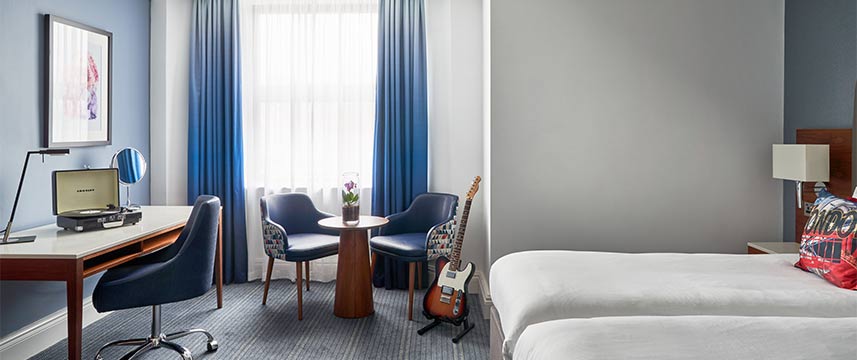 All of the rooms at the 4* Cumberland Hotel are decorated in a modern style. All rooms are fully air-conditioned, have comfy Hypnos beds and ensuite bathrooms with complimentary toiletries. In-room amenities include free Wi-fi, tea & coffee making facilities, flat-screen digital TV, hairdryer and complimentary mineral water. Larger Gold rooms also include Nespresso machines and bathrobes and slippers. Guests staying in Executive Rooms and Studio Suites have exclusive access to Back Stage Lounge open from 9am-9pm offering a selection of complimentary drinks and canapes. Within the hotel`s lobby is the Sound Cafe and Sound Sports Bar combining live music with a menu of casual dining favourites and cocktails. Pets are welcome at the hotel for an additional fee of £100 per stay. This must arranged directly with the hotel.