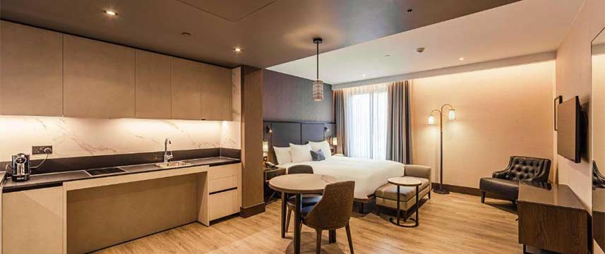 The 4* Fellowes House Cambridge has 163 spacious rooms and suites as well as a number of Studios and Apartments with kitchen area and separate lounge. All are tastefully designed and furnished. In-room amenities include free Wi-Fi, air-conditioning, 49-inch HDTV, coffee machine, tea making facilities and mini fridge. Ensuite bathrooms have rainfall shower, complimentary toiletries, hairdryer and bathrobes & slippers. Studios and Apartments have kitchens with dining space. During their stay guests can also make use of the hotels indoor swimming pool and fitness centre with sauna and steam room. The Folio Kitchen serves Breakfast every morning as well as a lunch and dinner menu of international flavours. Guests can also enjoy a relaxing drink in the Folio Bar or in the tranquil Fellows Garden. For more casual dining there is The Sage of Cambridge which is a cafe by day and wine bar by night.