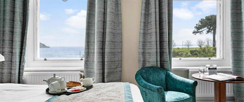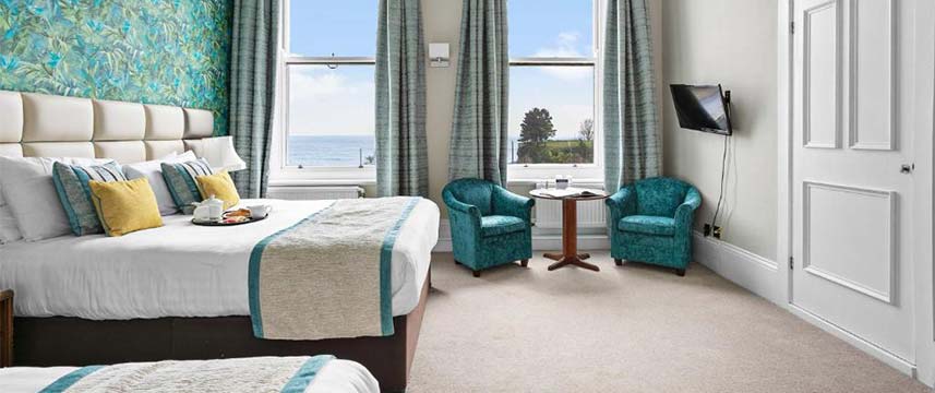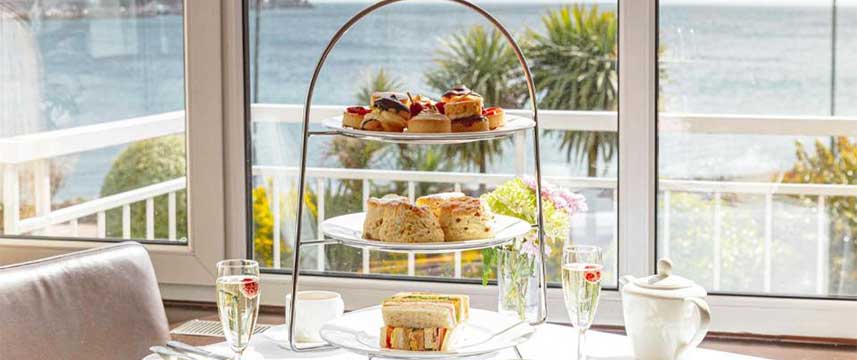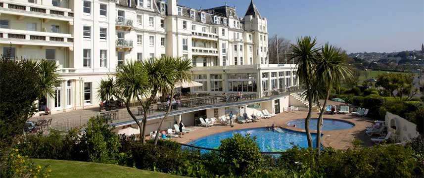 During their stay guests at the 4* Grand Hotel have use of the hotel`s leisure facilities which include two swimming pools, outdoor, open during the summer months, and indoor, open all year round. As well as a Fitness Suite, The Spa at The Grand is also open every day offering a range of relaxing treatments. Guests are advised to pre-arrange and pay for Spa treatments directly with the hotel. All of the hotel`s 132 rooms are spacious and blend the buildings original Victorian features with modern hotel amenities. These include flat-screen TV with Freeview, free Wi-Fi, tea & coffee making facilities, hairdryers and ensuite bathrooms with luxurious toiletries. Many rooms have spectacular sea views, including the Agatha Christie Suite, in memory of the famous author who spent her honeymoon at the hotel. The hotel`s public areas also offer sea views. Guests can choose to dine in The Compass Lounge Brasserie, where snacks and light meals are served throughout the day. Alternatively, Restaurant 1881 offers a formal evening dining experience. Traditional Afternoon Tea is also prepared daily by the hotel`s chefs which can be enjoyed in the hotel`s comfortable lounge.