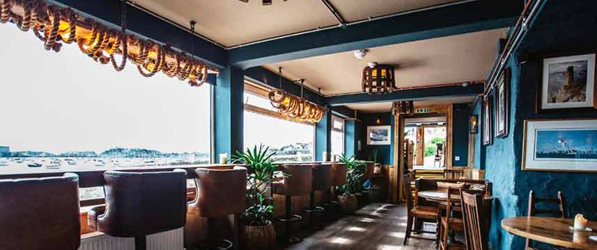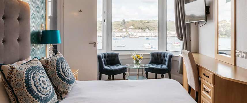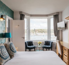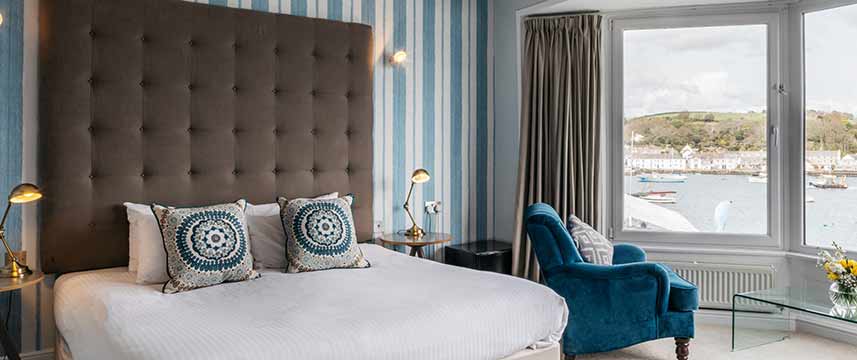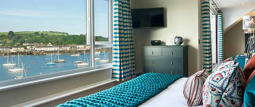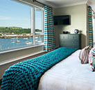 All of the rooms at the 4* Greenbank hotel, many with views over the harbour, are comfortably furnished with stylish decor. All include modern ensuite bathrooms with Cornish organic Bloom toiletries, bathrobes & slippers, tea & coffee making facilities and free Wi-fi. Deluxe rooms with bay window or small balcony also include mini fridge and coffee machine. For a special occasion there are also suites with private balcony, lounge area and roll top baths. Guests can also take in the panoramic views from The Water`s Edge Restaurant, which serves a menu featuring local ingredients for both lunch and dinner, as well as Afternoon Tea, for which booking is recommended. For more casual dining there is the Working Boat pub below the hotel on the waters edge.