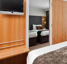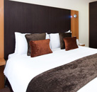 The hotel has 178 ensuite bedrooms all decorated in warm contemporary tones. All rooms are air conditioned, have direct dial telephone, 20 inch flat screen televisions with pay per view channels, hair dryer, work desk, tea coffee making facilities, internet WiFi at an extra charge. The hotel has wheel-chair accessible and inter-connecting rooms. Although the hotel does have its own bar and restaurant there is a wealth of choice with many bars and restaurants all within easy reach of the hotel.