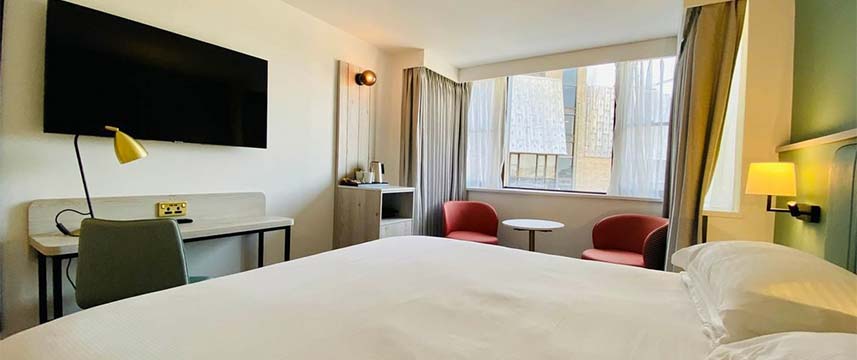 There are 126 stylish and modern rooms at The View Hotel Eastbourne, each guaranteeing a restful stay. The rooms at this hotel offer breath-taking views of Eastbourne`s seafront and town as well as being equipped with amenities including free Wi-Fi, flat screen TV, air conditioning, complimentary toiletries and a hair dryer. The on-site hotel gym offers a wide range of cardio and weight equipment for guests to work on their fitness during their stay with an amazing view of the seafront. The hotel offers guests a choice of dining options with their two on-site eateries. The Vista Bar Cafe and Bar is a vibrant and contemporary space to dine and drink looking out over the ocean. The Artisan Restaurant has a more sophisticated vibe for those wanting to dine in an elegant space. The hotel also offers Afternoon Tea in the Cafe as well as a Sunday Carvery.(pre-booking for both of these are required)