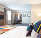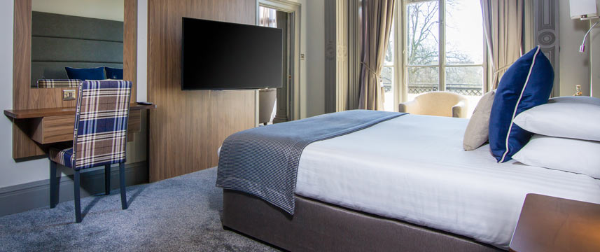 All of the 81 rooms at The Yorkshire Hotel are well proportioned and individually designed. The ensuite bathrooms are modern in style and have complimentary H2K toiletries. In-room facilities include, flat-screen TV, complimentary Wi-Fi, hairdryers and tea & coffee making facilities. Many of the hotel rooms overlook The Stray, the town`s peaceful parkland. There are also views from the hotel`s bar and lounge where sandwiches and light meals are served throughout the day. The Pickled Sprout serves an a la carte menu of contemporary British dishes.