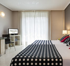 The Aparthotel Sercotel Togumar is a beautiful 3* aparthotel in the north of Madrid. Located close the new Juan Carlos 1 fairground and the Auditorium. The hotel is a 10 minute drive away from the airport and Santiago Bernabeu stadium, home of Real Madrid. With a myriad of bars and restaurants in the surrounding area you will be spoilt for choice for things to see and do. Central Madrid is only a 20 minute Metro ride away and the nearest Metro station is only 200 metres from the hotel.
