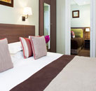 The 38 modern, comfortable rooms are all air-conditioned and equipped with a flat screen TV, minibar, tea and coffee making facilites, a safe and hairdryers. All the rooms also have blackout curtains and compimentary newspapers. Free Wi-Fi is available throughout the hotel. The hotel also offers (pay for) a 24 hour shuttle service from Charles de Gaulle airport.