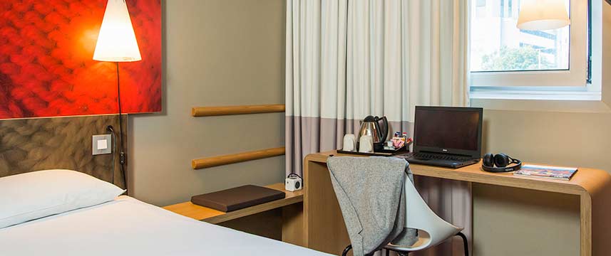 All of the 94 rooms at the 3* ibis Leicester City have contemporary decor and ensuite bathrooms with power shower. In-room amenities include free Wi-Fi, flat-screen TV and tea & coffee making facilities. In the lobby area there is a cafe style restaurant, serving buffet breakfast and casual dining evening menu. Snacks and light bites are available throughout the day from the fully licensed bar.