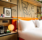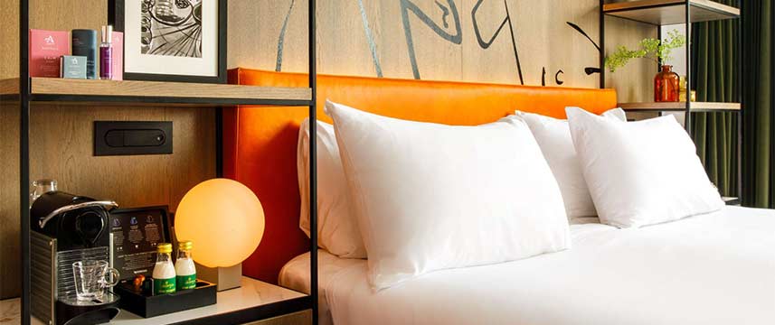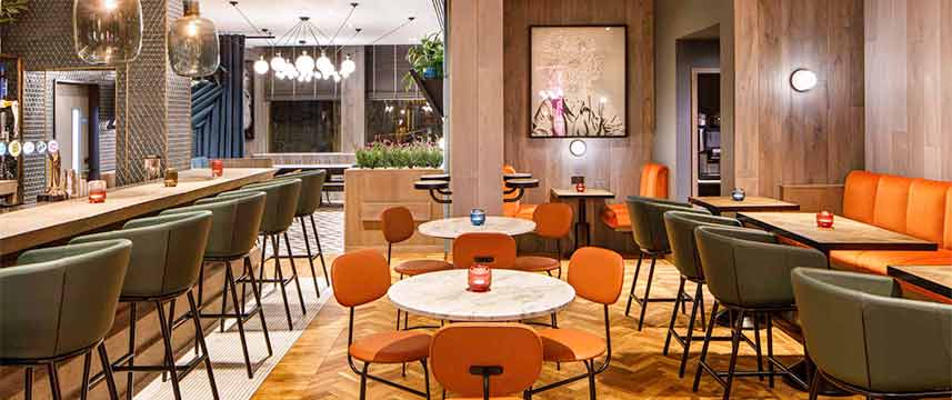 All of the 103 rooms at the 3* ibis Styles Edinburgh St Andrew Square have bold colourful decor and modern en-suite bathrooms. Amenities include, free Wi-Fi, flat screen TV and tea & coffee making facilities. For extra luxury, upgraded rooms such as The Works, offer a Nespresso machine and a view of Edinburgh from the balcony. All room rates at this hotel include Continental buffet breakfast. Guests can dine at hotels onsite restaurant and bar, Bonnie and Whistle.
