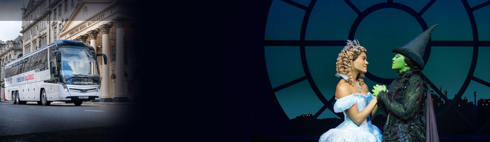 Every day, National Express coaches carry passengers into London from all over the UK. You can book any National Express coach journey as part of your theatre break, so no matter where you're travelling from, you can be sure of an easy and comfortable trip into the heart of the London. With hundreds of great hotels to choose from, it's easy to find the location that's best for you, whether you're seeking five-star luxury or just a quick getaway. As for the show, there are always dozens you can book with us - why not catch the latest hit musical at a glamorous West End theatre; take in a classic at Shakespeare's Globe; or marvel at the musical icons of the past brought to life at the ABBA Arena? And at the end of it all, you'll be whisked back home on the return coach service of your choice.